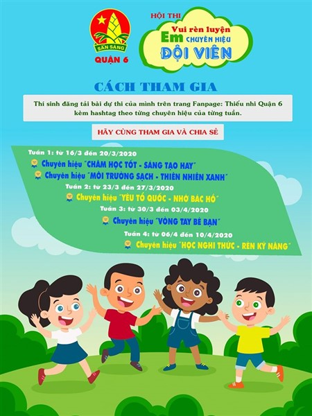 - Thí sinh đăng tải bài dự thi trên trang fanpage Thiếu nhi Quận 6, kèm hastag #chuyenhieusangtaohay.